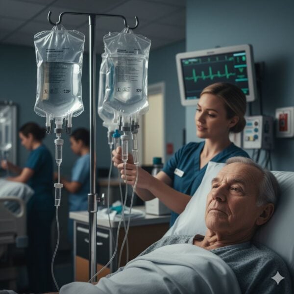In my case, the bags were just sterile water with some minerals, but they were the massive two-liter bags, not the normal one-liter ones. I received six of them before I was discharged. I already knew they couldn’t do anything real for me in the realm of surgery or other treatment, so this was their only course of action.