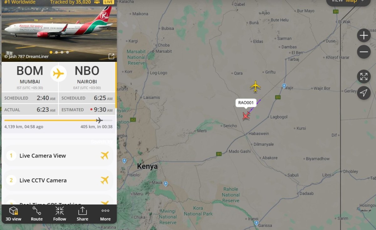 The aircraft, which departed Kochi, India, earlier Thursday, changed its call sign from KQ203 to RAO001 upon entering Kenyan airspace in a symbolic tribute to the late opposition leader.