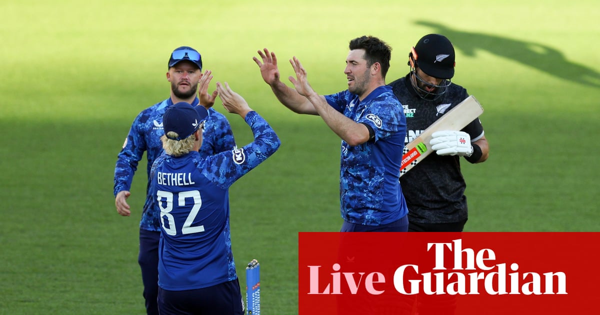 16th over: New Zealand 94-3 (Mitchell 6, Latham 1) England buzz about with more intensity now they have a puncher’s chance, just a couple off the returning Carse. New Zealand still favourites with 129 needed from 34 overs. A few more in that wickets column though…