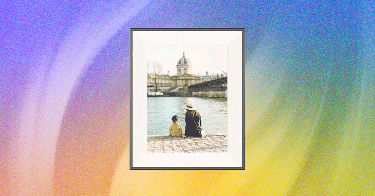 Now, with the Aura Ink’s truly cordless design, it’s possible to hang it without any cord clutter. The 13-inch screen makes it a little larger than the 12-inch Aura Aspen but smaller than the 15-inch Walden, and is a nice size for hanging. The Ink comes with a little mounting kit of two nails and a small hook that the digital frame clicks into, and it can easily click back off for charging (the charging port is on the side if your hanging spot is near an outlet). I was able to hang it on one of my existing pushpins without issue, and the frame easily blended into my existing gallery wall.